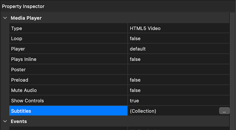 The Video object has built-in support for subtitles in standard Web Video Text Tracks (WebVTT) format.