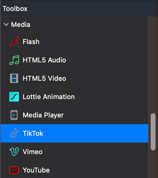 To add a TikTok video to your web page, use the TikTok widget. Simply drag the widget onto your page and enter the TikTok post ID