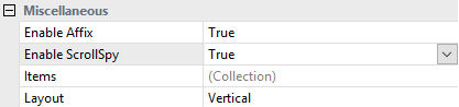 Now you can test ScrollSpy by previewing or publishing the page. You will notice that when scroll the page that the menu will disappear, so you won't see the state of the menu change... That is where Affix comes into play!