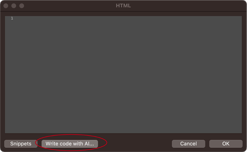 Write custom code with help to AI! AI functionality is available in the HTML object, Object HTML and Page HTML.