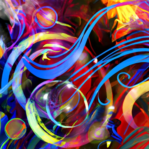3. An abstract representation of music, with dynamic, flowing patterns and bold colors that capture the rhythm and emotion of a musical piece.