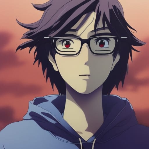 1. Studio Ghibli, Anime Key Visual, by Makoto Shinkai, Deep Color, Intricate, 8k resolution concept art, Natural Lighting, Beautiful Composition, tall man with glasses and a quif wearing a black hoodie.