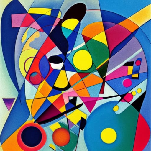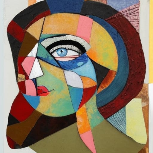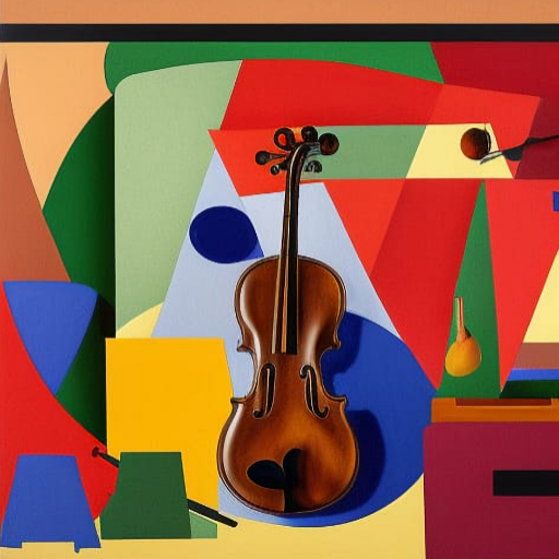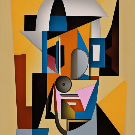 1. A portrait of a musician, showcasing their face and instrument simultaneously, with geometric shapes and angles defining each element in cubism style.