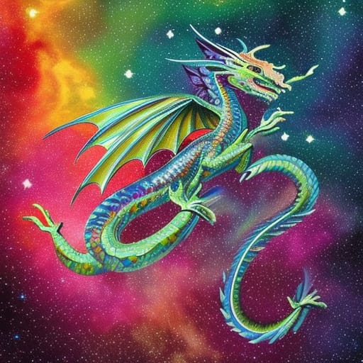 2. A breathtaking dragon soaring majestically across a starlit sky, its scales shimmering with an array of vibrant, iridescent colors.