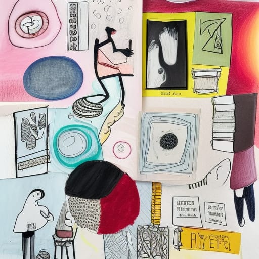 2. A deeply personal visual journal, filled with raw and emotive sketches, diary entries, and collage elements, capturing the inner world of an untrained artist.