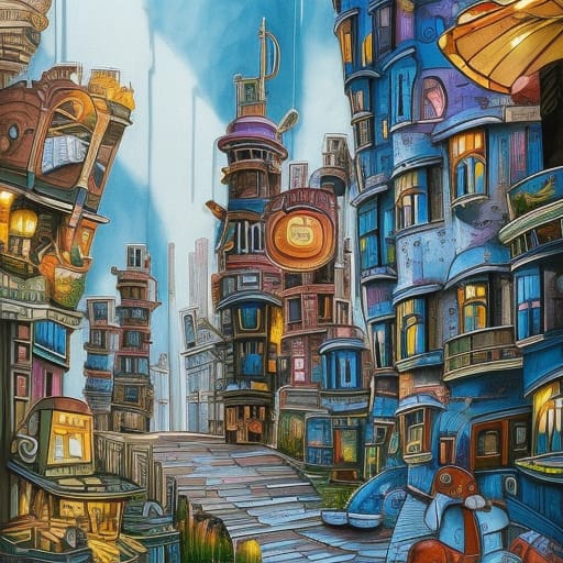 3. An outsider's interpretation of a familiar cityscape, where buildings and streets are transformed into whimsical, childlike creations, offering a fresh and unique perspective.