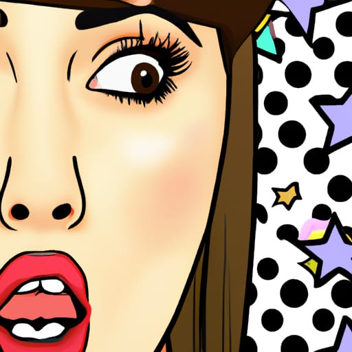 1. Design a pop art composition with a vibrant background of polka dots and a close-up of a surprised celebrity's face.