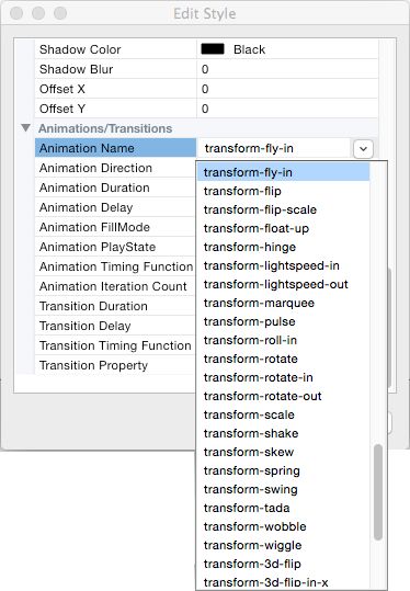 Go to the animation section and select an animation in 'Animation name'. Also set other values such as the duration and the iteration count.
