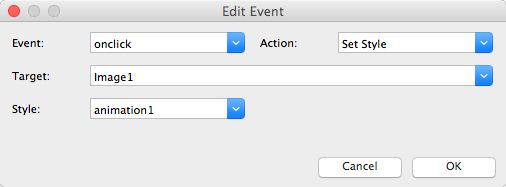 Set the action to 'Set Style'. Set the target to 'Image1' and the style to 'animation1'.