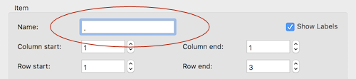 - Names must be unique. You cannot use the same name for different areas (including in other flex grids)