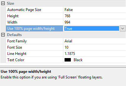 Select 'Set page width and height to 100%' in the Page Properties.