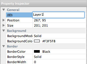 Make note of the ID in the properties window, you will need that ID later. If this is the first layer of the page it will probably be called 'Layer1'. You can change the ID in the Properties window if you like.