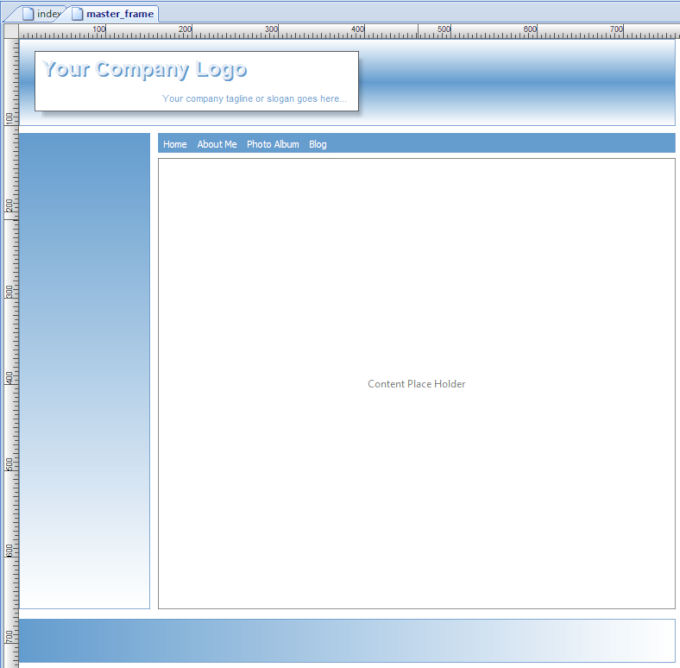 We will start with the master frame. Insert a new page and call it 'master_frame'.