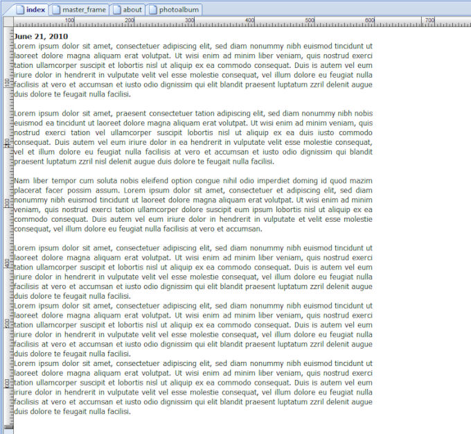 Publish or Preview the page. You will notice that the content of the page is now surrounded by the master frame.