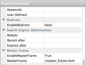 In Page Properties we configure which page should be used a as the Master Frame.