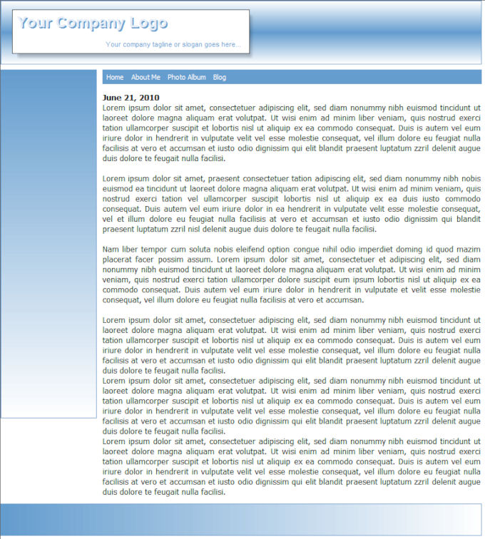 The page will have a header, menu, footer and (very important) a Content Place Holder.