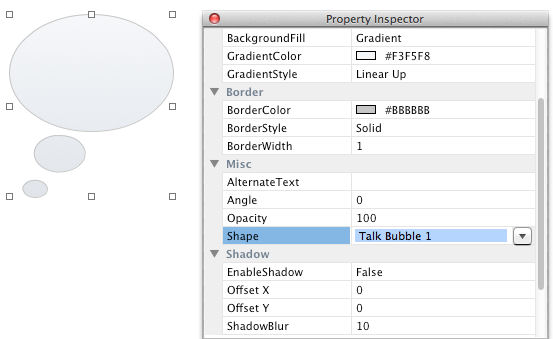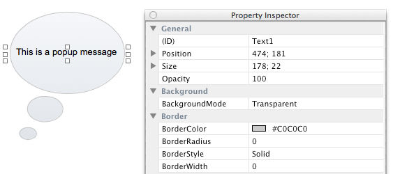 In this example the ID is of the talk bubble is 'Shape2' and the text 'Text1'.