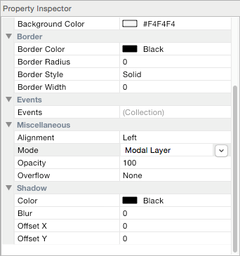 A Panel Layer is initially invisible, but it can slide from the right or left side of the page by using events (show/hide).