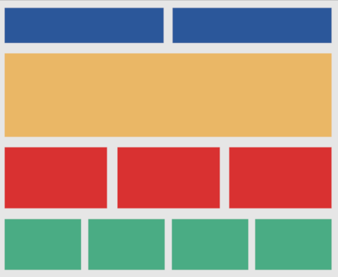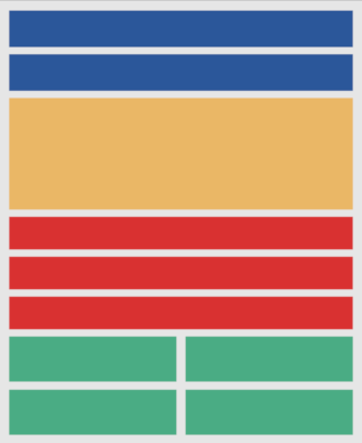 On a tablet (with a smaller screen) there is less space so the boxes will be harder to read without zooming (if they had text). So let's add a breakpoint for 768 pixels screens and rearrange the boxes. Note that the same objects were used, only their position and size was changed!