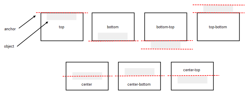 bottom, when the bottom of the object is aligned with the top of the viewport