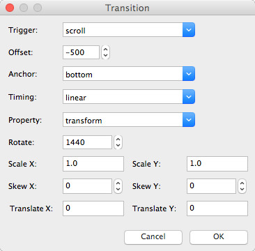 Scroll Transitions make it possible to animate the CSS properties of objects based on the position of the scrollbar.