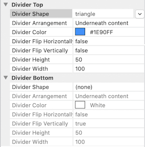 Shape dividers can be added at the top or bottom (or both) of a layer, layout grid or flexbox container.