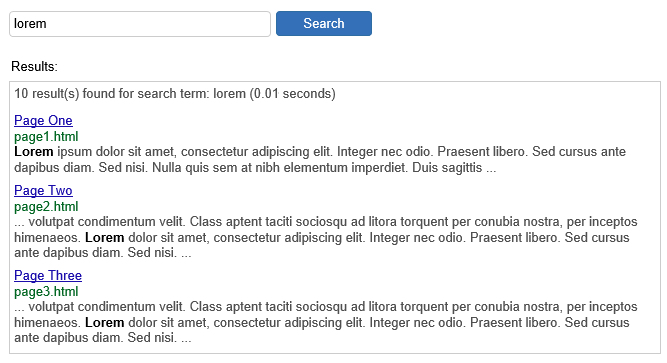 The search option does not have any special server requirements because it uses JavaScript, so it's very easy to insert this component to your page(s).