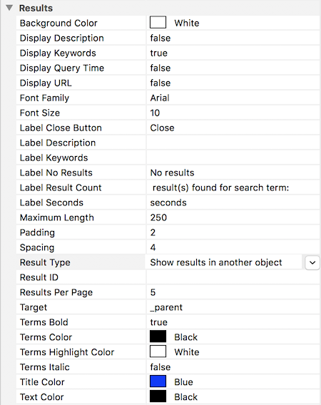Besides styling options, like font, colors and padding, there are also options to specify where the results will be displayed.