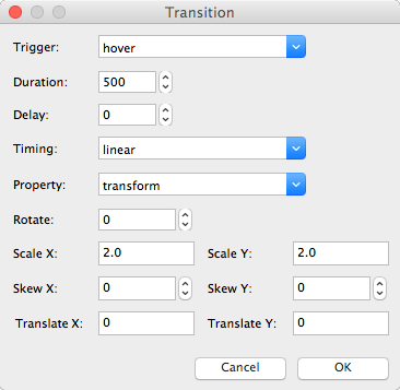 • Select 'transform' in the property dropdown list and leave all default values unchanged.