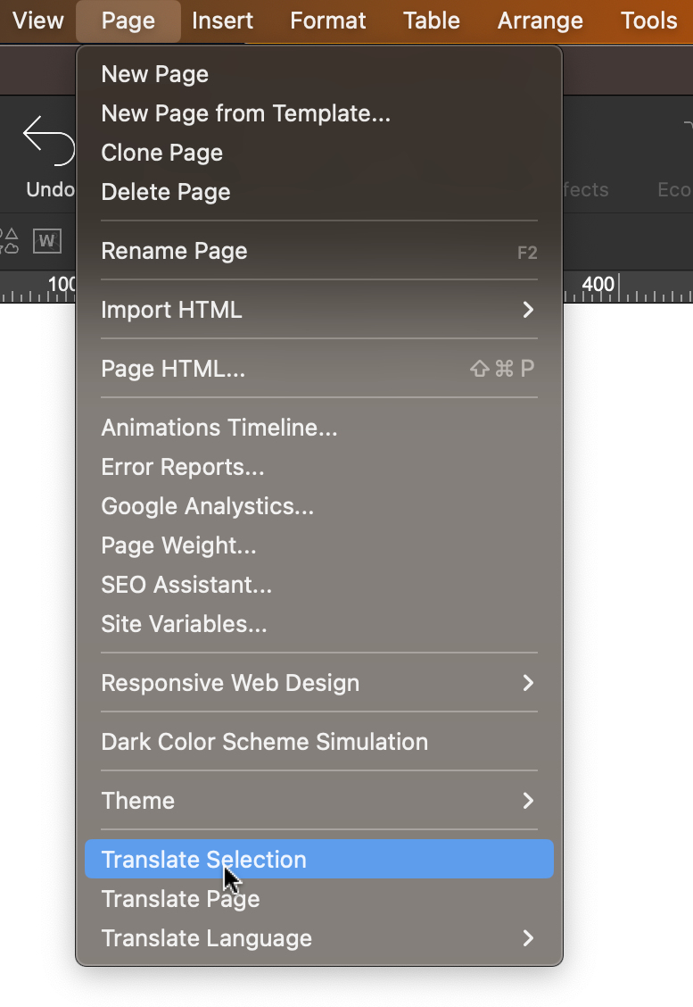 The 'Translate selection' option will translate the selected objects. This can be useful if you only want to translate specific items on the page.