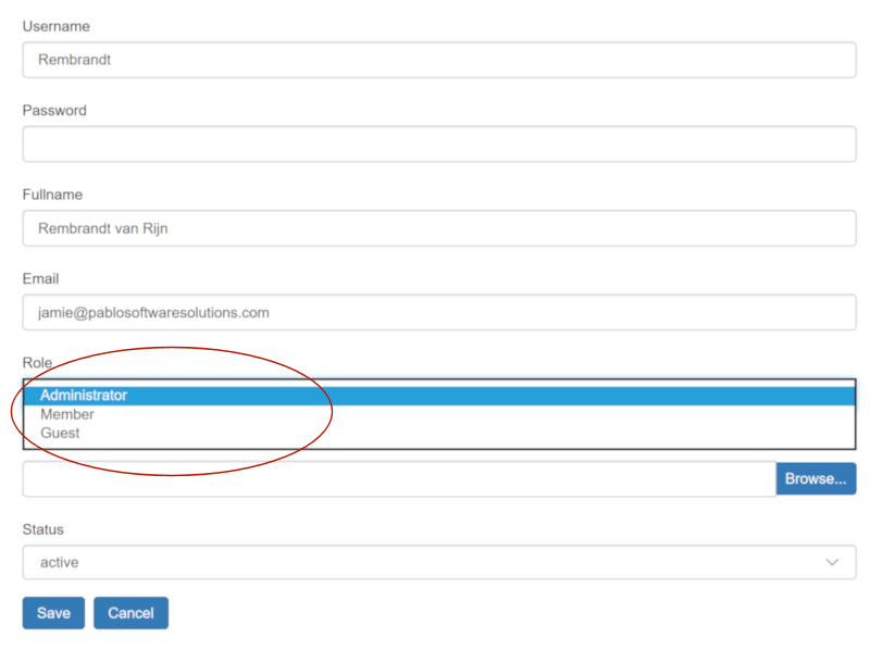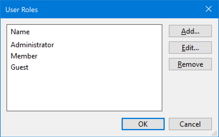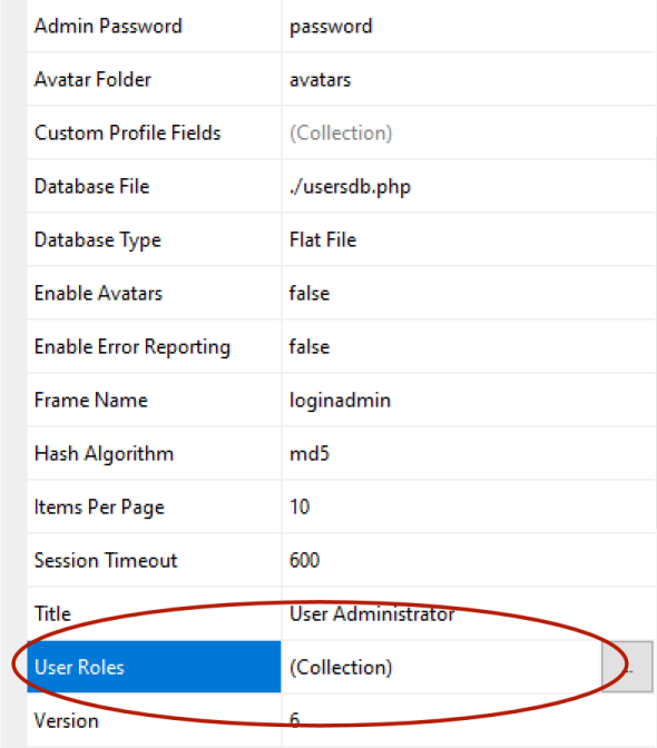User roles can be configured in the properties of the Login Admin object. Here you can add, edit and remove roles.