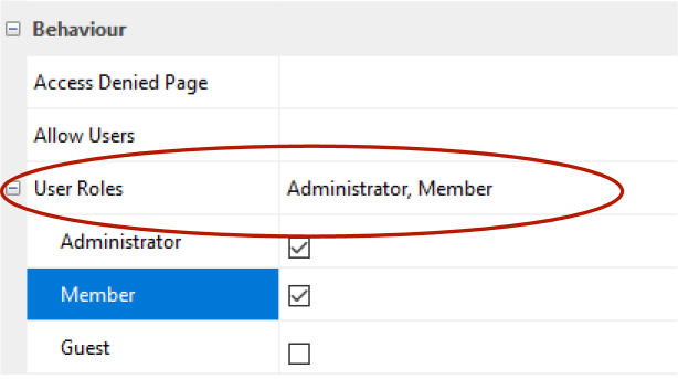 User roles (also known as user groups) are used to create different types of users for protected page. This makes it possible to give groups of (logged in) users access to specific pages only. For example, Administrator, Member or Guest.