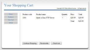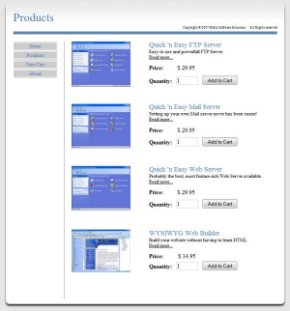 Shopping Cart features: • Uses Quick 'n Easy Web Builder to manage the layout • Uses PHP to manage the cart • Designed for a small number of products • Fully customizable storefront • Customer and Merchant email order confirmations • No database required! • PayPal integration